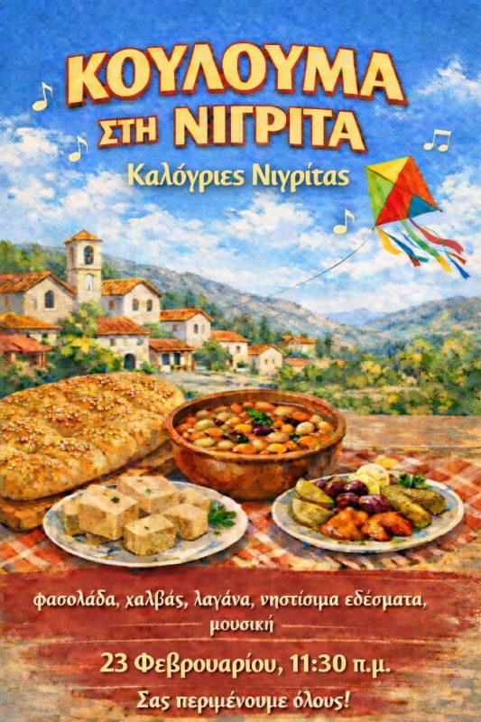 Παραδοσιακά Κούλουμα στις Καλόγριες Νιγρίτας με παραδοσιακή φασολάδα, σαρακοστιανούς μεζέδες, ζωντανή μουσική και πολλά δώρα