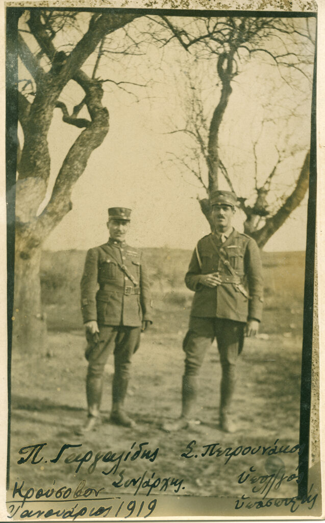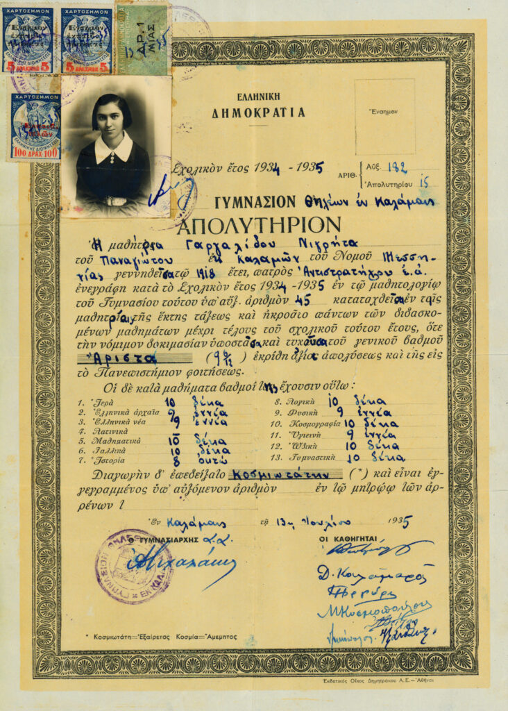 Τελειώνω με κάποιες φωτογραφίες που μας έστειλαν τα Γενικά Αρχεία του Κράτους Αρχεία Νομού Μεσσηνίας. Προέρχονται από μια συλλογή που δωρήθηκε στην εκεί Υπηρεσία από ιδιώτη και προέρχεται από το οικογενειακό αρχείο του στρατηγού Παναγιώτη Γαργαλίδη, με καταγωγή από την Καλαμάτα. Αυτός μαζί με τον στρατηγό Κοντογιάννη συνέδεσαν τη δράση τους ως νεαροί τότε αξιωματικοί. Ο Γαργαλίδης ηγήθηκε της μάχης στα Πλατανούδια ως λοχαγός. Ένθερμος Βενιζελικός ήταν βασικό στέλεχος του Κινήματος της Εθνικής Αμύνης του Βενιζέλου, στη Θεσσαλονίκη. Στη συνέχεια πολέμησε κατά τον Ευρωπαϊκό πόλεμο στο Μακεδονικό Μέτωπο όπου και διακρίθηκε. Πολέμησε και στο Μικρασιατικό Μέτωπο. Συμμετείχε στη συνέχεια στη συγκρότηση της Στρατιάς του Έβρου. Εξαιτίας όμως της συνθήκης της Λωζάνης την οποία θεώρησε απαράδεκτο συμβιβασμό στράφηκε εναντίον του Πλαστήρα και έκανε αντικίνημα. Απέτυχε, δικάστηκε και καταδικάστηκε σε θάνατο. Η ποινή του μετά την εκτέλεση των εξ δεν πραγματοποιήθηκε. Του δόθηκε χάρη και αποστρατεύτηκε. Επανήλθε για λίγο στο στράτευμα μετά το κίνημα του 1935. Τελευταία άφησα δύο φωτογραφίες. Τη φωτογραφία της κόρης του σε μικρή ηλικία και τη φωτογραφία του απολυτηρίου της από το Γυμνάσιο. Από ότι φαίνεται ίσως ήταν η μοναδική γυναίκα στον κόσμο που ονομαζόταν Νιγρίτα.