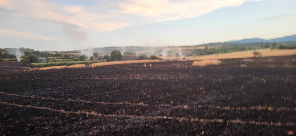 Η φωτιά εξαπλώθηκε αμέσως λόγο του καύσωνα και της υψηλής θερμοκρασίας που επικρατούσε στην περιοχή με αποτέλεσμα να καούν 250 στρέμματα σιτηρών ανάμεσά τους και ελαιώνες.